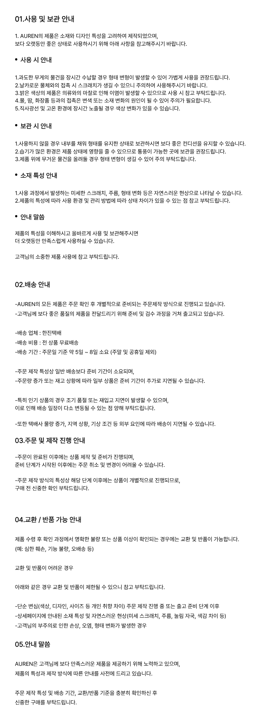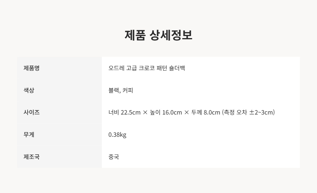 ※ 상품사이즈 치수는 재는 방법과 위치에 따라 1~3cm 오차가 있을 수 있습니다.